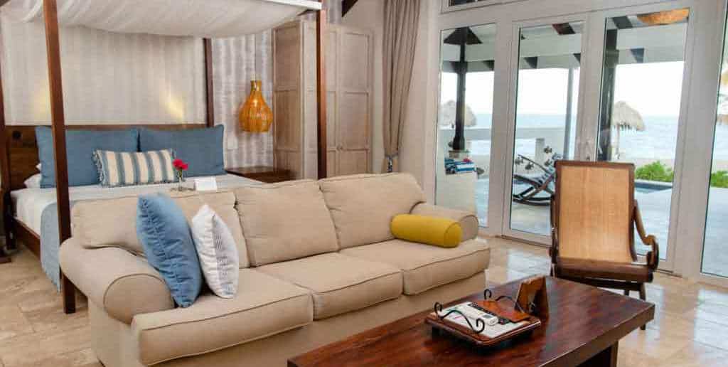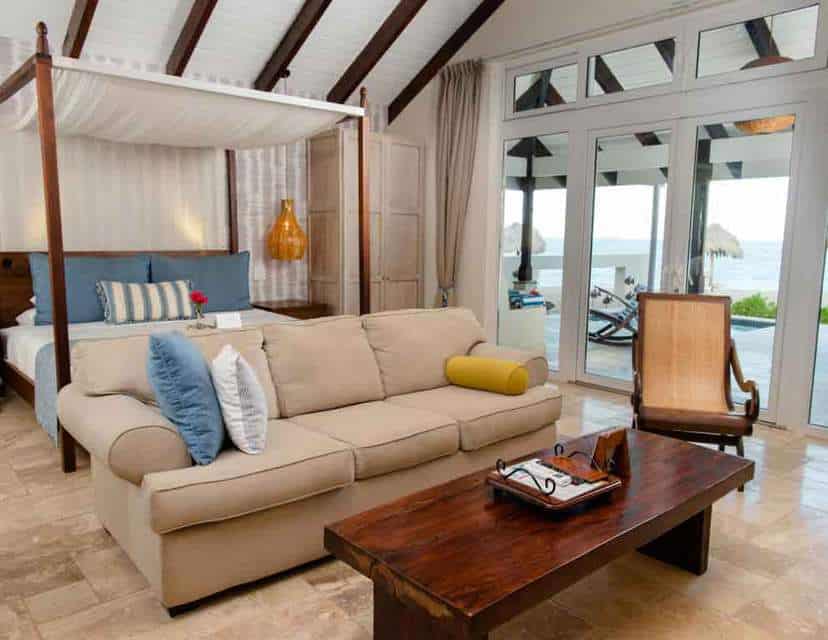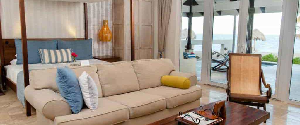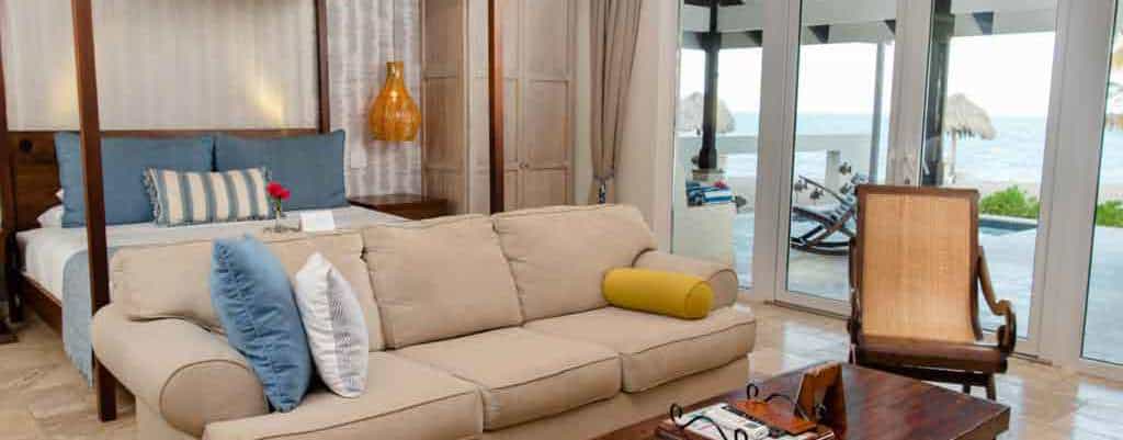 Pricing Includes taxes and resort fee. This suite has vaulted ceilings, enclosed patios, and outdoor personal plunge pools with views of the beach and the Caribbean Sea. Seafront Suite includes: Sleeps 2 – 1200 sq.